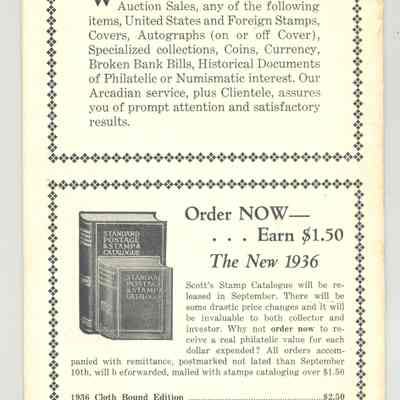 CAT, STAMPS, 1935, OH. USA AND FOREIGN, ARCADE STAMP & COIN CO. CHARLES MOLNAR, AUCT. 22 PP. 5 3/4" X 8 1/2"Created By