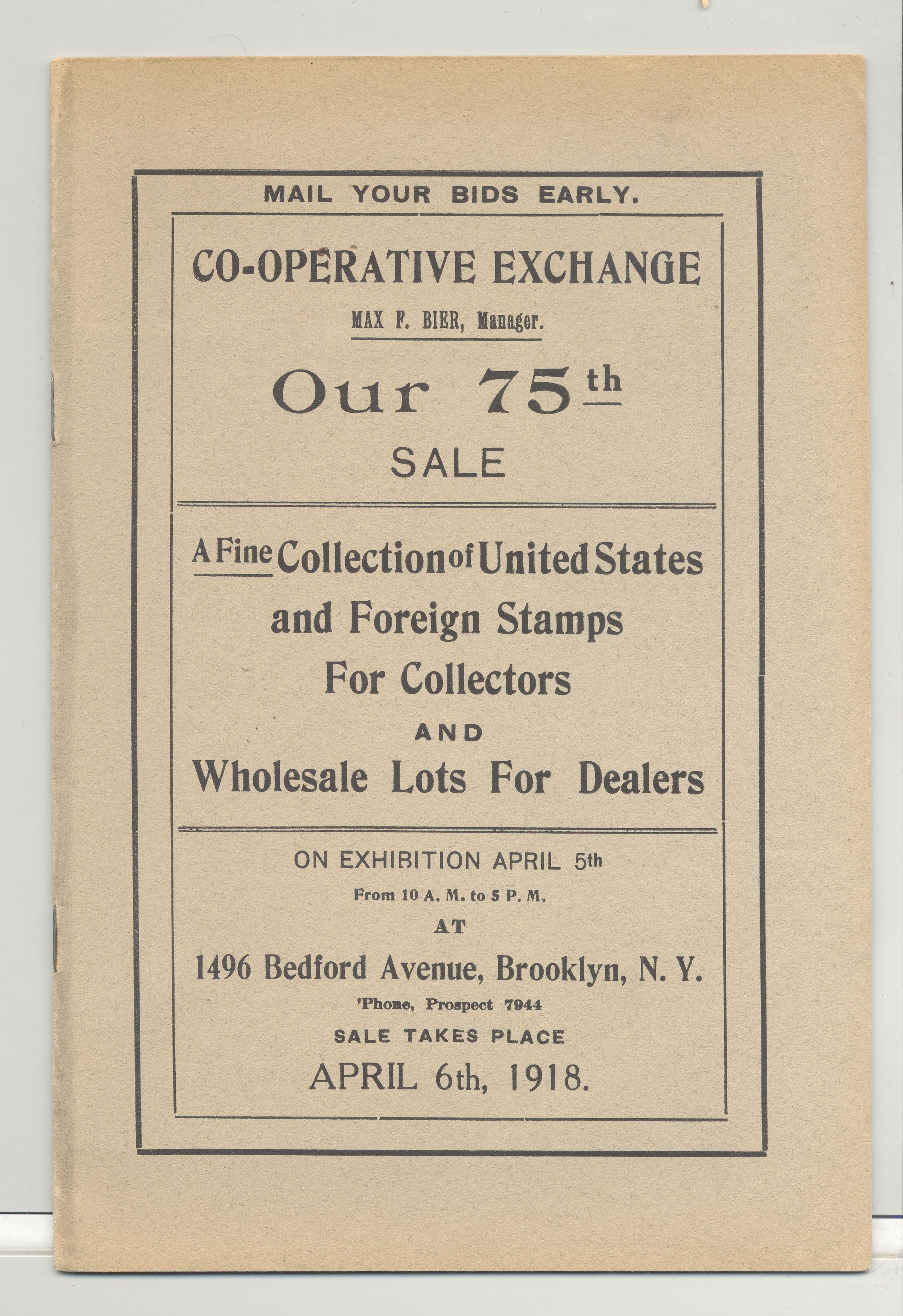 CAT, STAMPS, 1918, NY. CO-OPERATIVE EXCHANGE, 75TH SALE. USA & FOREIGN, 23 PP. 6" X 9"