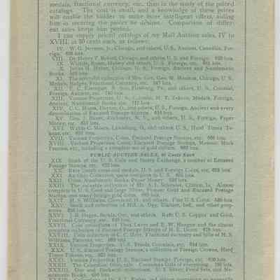 CAT, COINS, 1907, IL. XXXV PUBLIC SALE, PATTERNS, PAPER MONEY, INCL VERY RARE GOLD DOLLAR OF 1875. MARVIN BARLOW, AUCT. 16 PP. 6" X 9"Created By