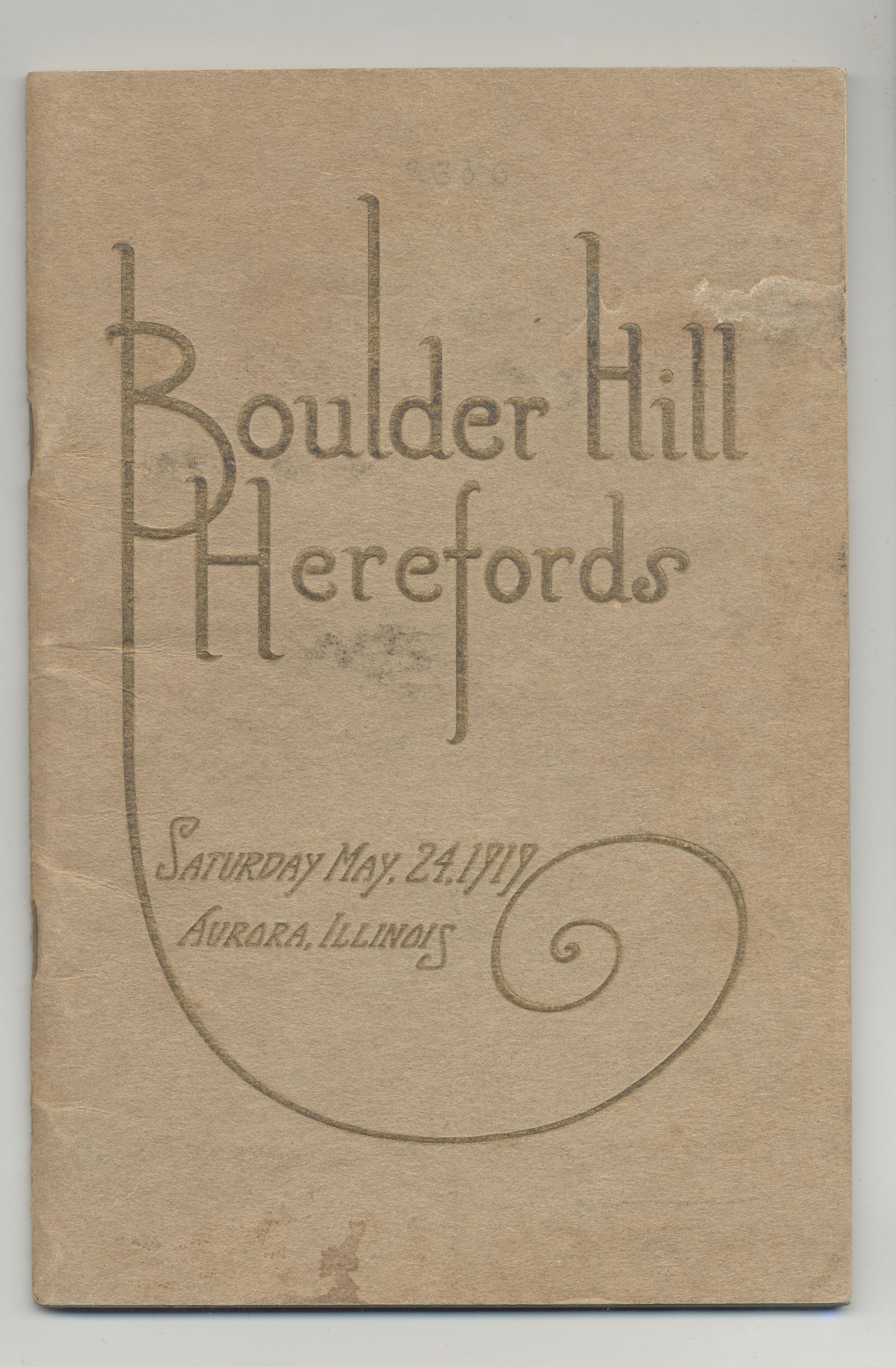 CAT, CATTLE, 1919, IL. BOULDER HILL HEREFORDS, COLS REPPERT & GARTIN, AUCTS. B/W PHOTOS AND PRICES EA LOT, 56 PP. 5 1/4" X 7 3/4"Created By