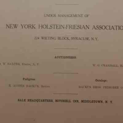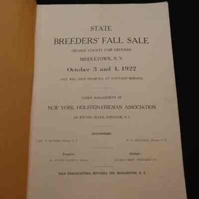 CAT, CATTLE, 1922, NY. STATE BREEDERS' FALL SALE, ORANGE CTY FAIR GROUNDS, MIDDLETOWN. GEO. BAXTER, W.G. CRANDALL, AUCTS. SOME PRICES, B/W PHOTOS. APPROX 100 PP. 8 3/4" X 11 3/4"Created By