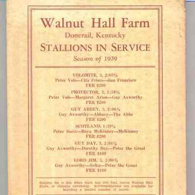 CAT, HORSE, 1938, KY. WALNUT HALL FARM YEARLINGS. THE KY SALES CO, AUCTS. 124 PP. 6" X 9"