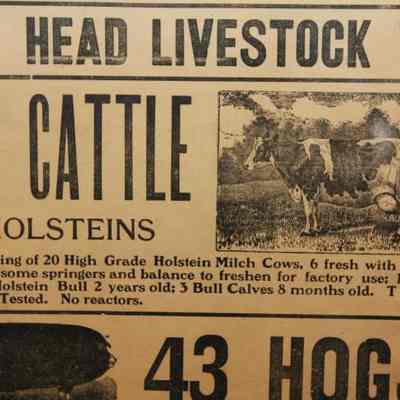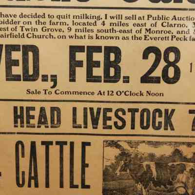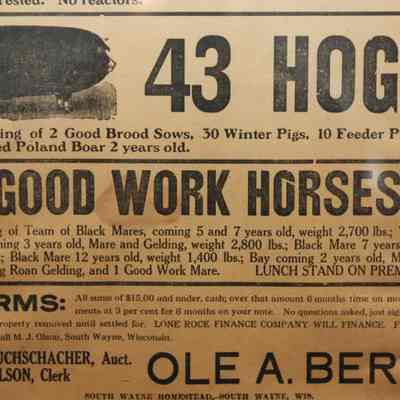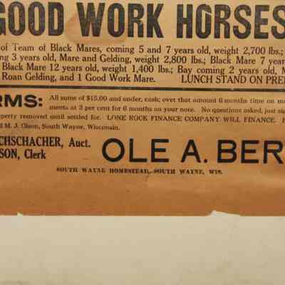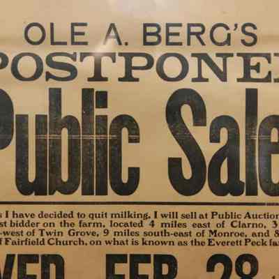FR. 1940 WI (WISC.) FARM AUCTION BROADSIDE. 12X23." AUCTIONEER F. L. BUCHSCHACHER COMMENCED AT 12 NOON WITH A "POSTPONED PUBLIC SALE" OF LIVESTOCK. LUNCH STAND ON PREMISES.Created By