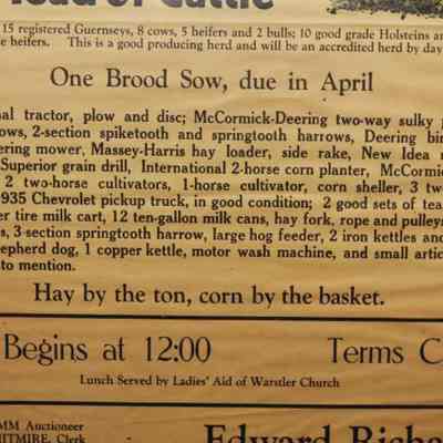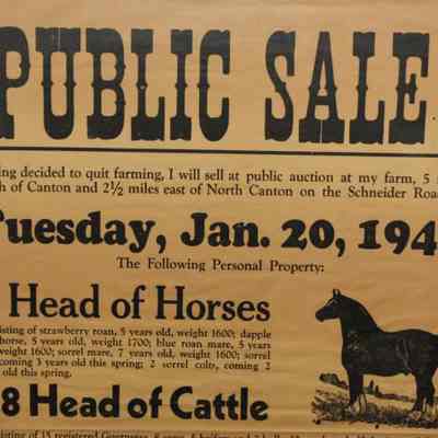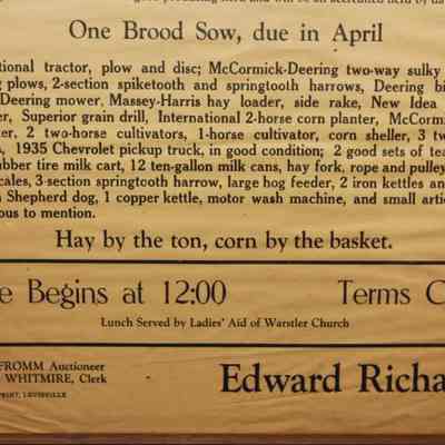 FR, BROADSIDE, LIVESTOCK, 1942, KY. C.A. FROMM, AUCT. HORSE, CATTLE, PIGS, FARM EQUIPMENT. HAY BY THE TON, CORN BY THE BASKET. 18 1/4" X 22 1/4"Created By