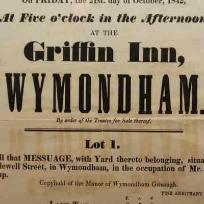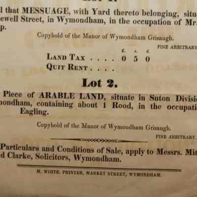 FR, BROADSIDE, REAL ESTATE, 1842, WYMONDHAM, ENGLAND(?) GLASSPOOLE AND STANDLEY, AUCTIONEERS. 9" X 15"Created By