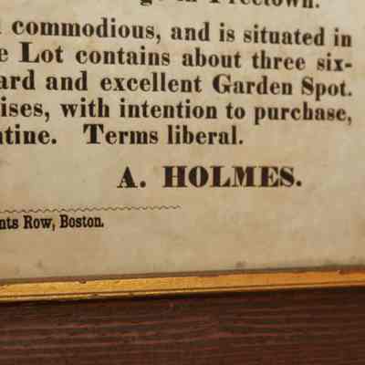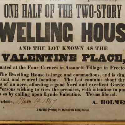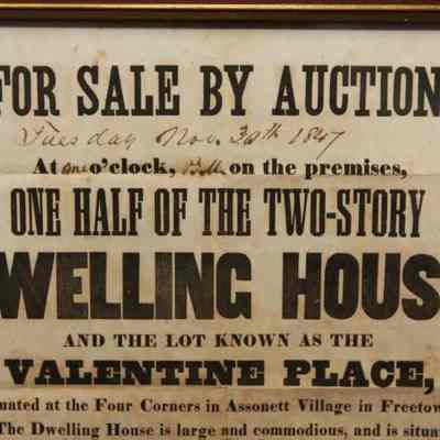 FR, BROADSIDE, REAL ESTATE, 1847, MA. ONE HALF OF THE TWO STORY DWELLING HOUSE AND THE LOT KNOWN AS VALENTINE PLACE, FREETOWN. 14 1/2" X 12 1/2"Created By