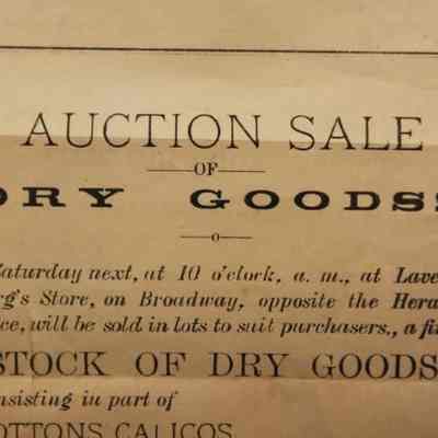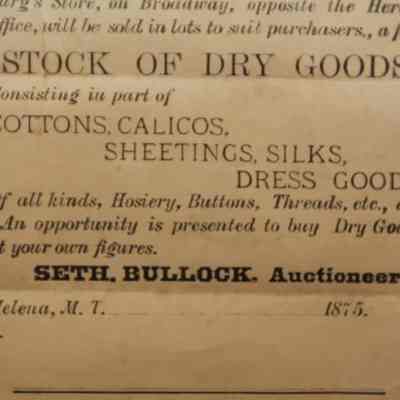FR, BROADSIDE, 1875, HELENA, M.T. AUCTION SALE OF DRY GOODS, SETH BULLOCK, AUCTIONEER. 9" X 11"