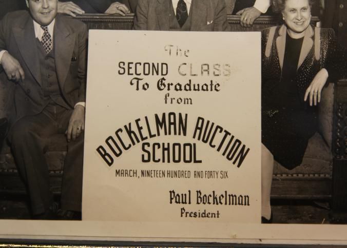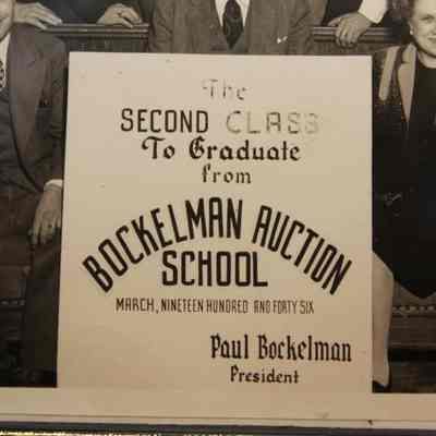 FR, PHOTO, AUCTION SCHOOL, 1946. THE SECOND CLASS TO GRADUATE FROM THE BOCKELMAN AUCTION SCHOOL, PAUL BOCKELMAN, PRESIDENT. 12 1/4" X 9 3/4"Created By