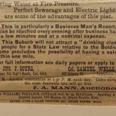 FR, REAL ESTATE, LAND, MI. NO YEAR. 40 LOTS, COOL BREEZES AND DELIGHTFUL VIEW. RAPID TRANSIT, 20 MINS, 5 CENT FARE FOR RESIDENTS. J.A. MANN, AUCT. 11" X 24"Created By