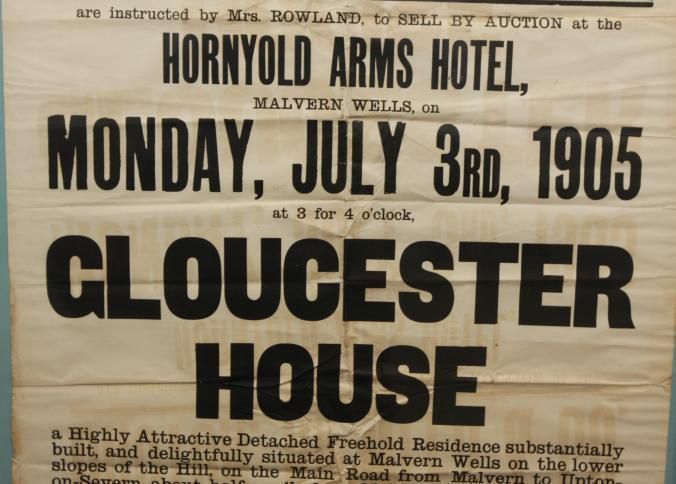 FR BROADSIDE, REAL ESTATE, 1905, GLOUCESTER, ENGLAND. GLOUCESTER HOUSE, FREEHOLD RESIDENCE. PARTICULARS. ALBION CHAMBERS, AUCTIONEERS. 24" X 31"Created By