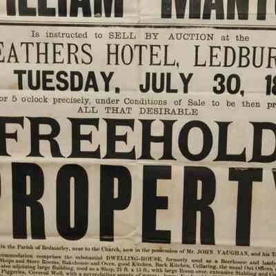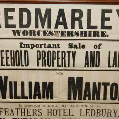 FR BROADSIDE, REAL ESTATE, 1889, LEDBURY, ENGLAND. WILLIAM MANTON, AUCTIONEER. PARTICULARS. 26 1/2" X 32 1/2"Created By