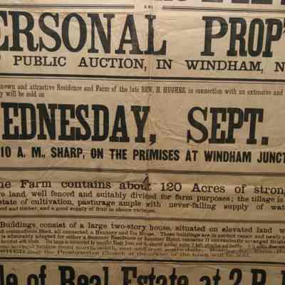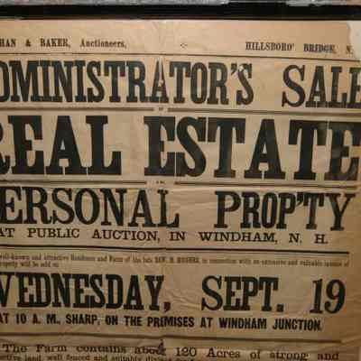 FR BROADSIDE, REAL ESTATE, 1888, NH. FARM, 120 ACRES, BLDGS AND PERSONAL PROPERTY. MANAHAN & BAKER, AUCTIONEERS. 314 1/2" X 39 1/2" INCL PAPER WITH TERMS PRINTED TAPED TO BACK.Created By