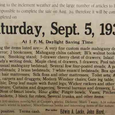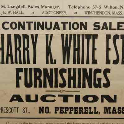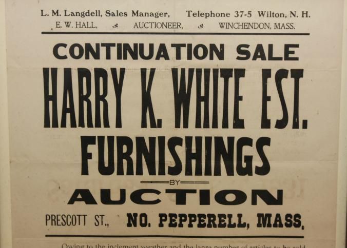 FR BROADSIDE, ESTATE, 1931, MA. CONTINUATION SALE, FURNISHINGS. PARTIAL LISTING. E.W. HALL, AUCTIONEER. 20" X 25 1/2"Created By