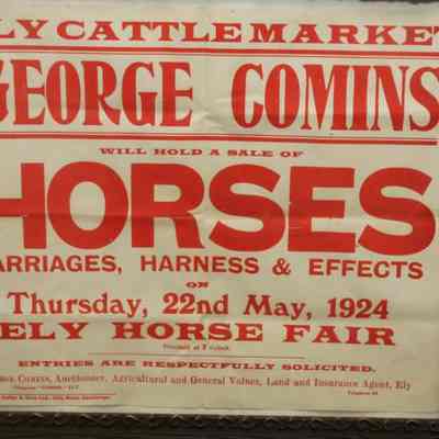 FR BROADSIDE, HORSES, 1924, ELY. ENGLAND. ELY CATTLE MARKET, GEORGE COMINS, AUCTIONEER. RED PRINT. 27" X 23"Created By