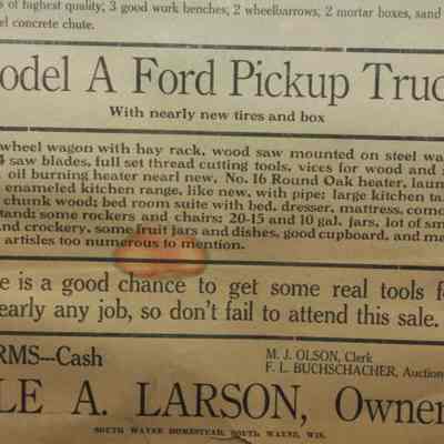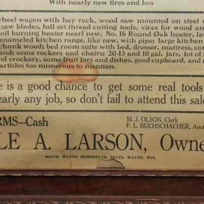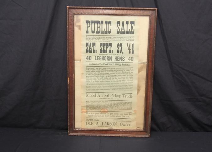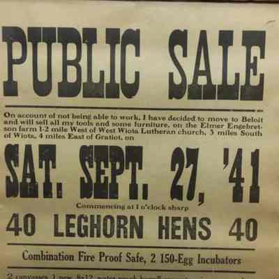 FR BROADSIDE, 1841, WI. FARM SALE, HENS, EQUIPMENT, MODEL A TRUCK. F.L. BUCHSCHACHER, AUCTIONEER. 18" X 26"Created By