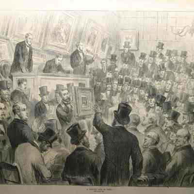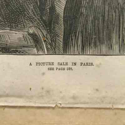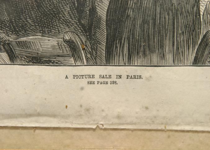 FR PRINT, 1872, ART AUCTION. FROM THE ILLUSTRATED LONDON NEWS, "A PICTURE SALE IN PARIS" CROWD OF MEN WITH TOP HATS ON AT AUCTION. 17" X 12 1/2"Created By