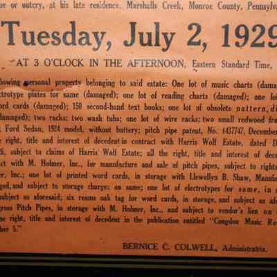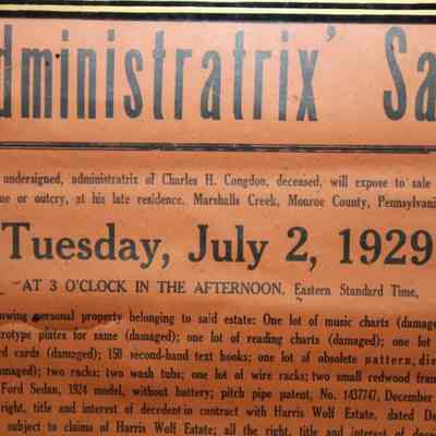 FR BROADSIDE, 1929, PA. ADMINISTRATIX' SALE. BERNICE C. COLWELL, ADMINISTRATRIX. 19" X 20"