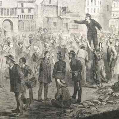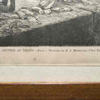 FR ENGRAVING, FISH AUCTION, 1874. PRINTED IN HARPER'S BAZAR. "A FISH AUCTION AT DIEPPE - FROM A DRAWING BY H.J. MONTAGUE" 18" X 14"Created By