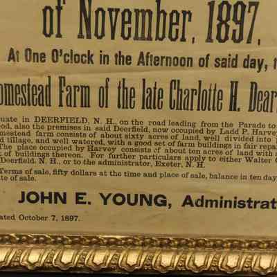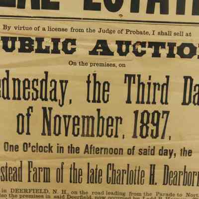 FR BROADSIDE, REAL ESTATE, 1897, NH. ADMINISTRATOR'S SALE OF REAL ESTATE. HOMESTEAD FARM IN DEERFIELD, NH. JOHN E YOUNG, ADMIN. 15 1/2" X 22"Created By