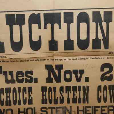 FR BROADSIDE, LIVESTOCK, 1916, CHARLESTON. HOLSTEINS, HORSES, EQUIPMENT. 20" X 26"