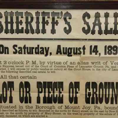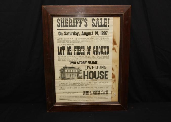 FR BROADSIDE, REAL ESTATE, 1897, PA. SHERIFF'S SALE, JOHN MYERS, SHERIFF. 20 3/4" X 24 3/4"