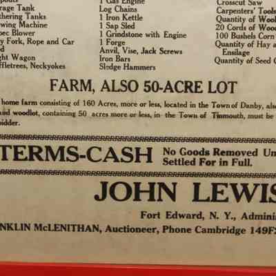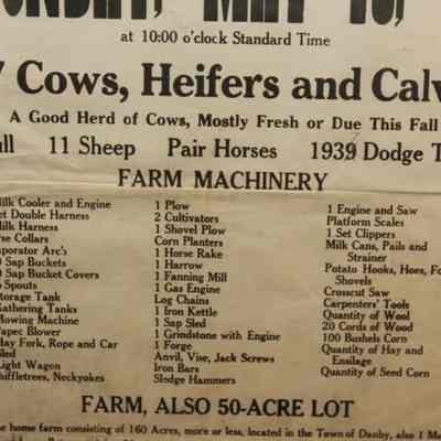 FR BROADSIDE, FARM, 1939, NY. 37 COWS, HEIFERS AND CALVES, MACHINERY, OTHER LIVESTOCK. 50 ACRE LOT. FRANKLIN MCLENITHAN, AUCTIONEER. 16" X 25"Created By