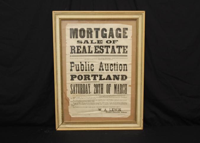 FR BROADSIDE, REAL ESTATE, 1896, PORTLAND. MORTGAGE SALE OF REAL ESTATE. W.H. DENAUT, AUCTIONEER. 24" X 30 1/4"Created By