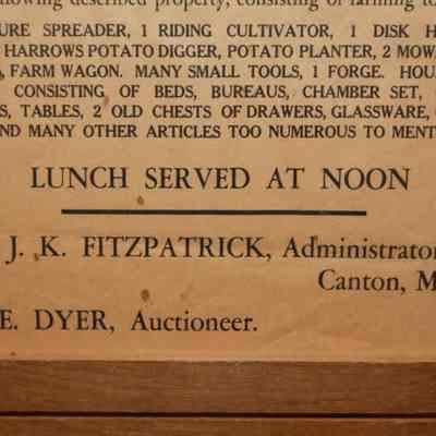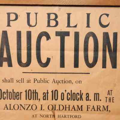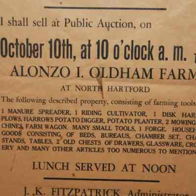 FR BROADSIDE, FARM, ME. ALONZO I. OLDHAM FARM AT NORTH HARTFORD. H.E. DYER, AUCTIONEER. 15 1/2" X 19"Created By