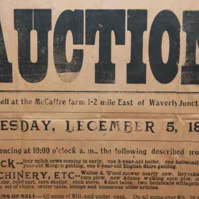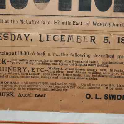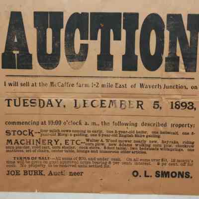 FR BROADSIDE, 1893, FARM STOCK AND MACHINERY, WAVERLY JCT. JOE BURK, AUCTIONEER. 12 1/2" X 11"