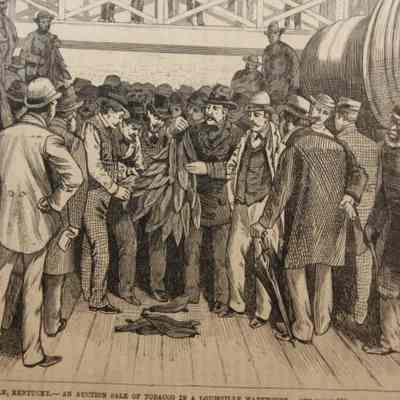 FR PRINT, TOBACCO, KY. LOUISVILLE KENTUCKY- AN AUCTION SALE OF TOBACCO IN A LOUISVILLE WAREHOUSE. 13 1/2" X 11 1/2"Created By