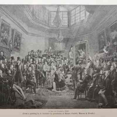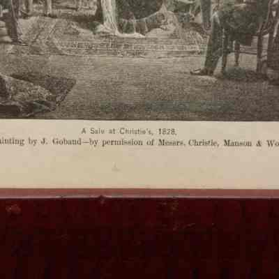 FR PRINT, 1828, SALE AT CHRISTIE'S, FROM A PAINTING BY J. GOBAUD-BY PERMISSION OF MESSRS. CHRISTIE, MANSON & WOODS. ART AUCTION, CROWD OF BUYERS. 11" X 9"Created By