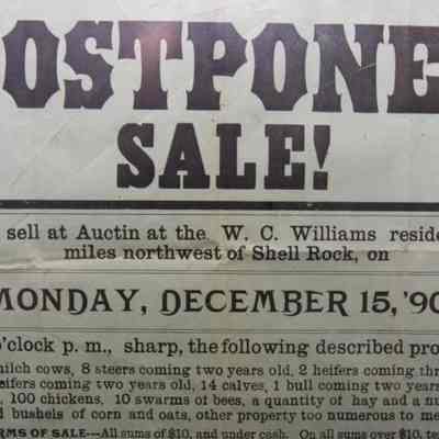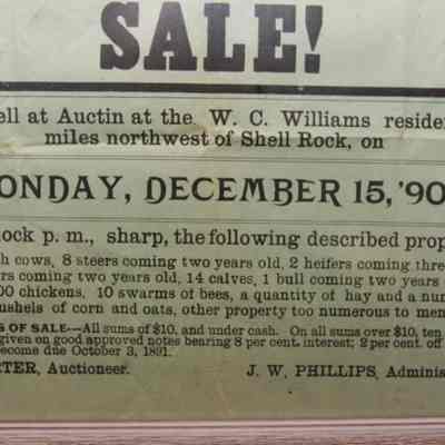 FR BROADSIDE, 1890, SHELL ROCK, IA. LIVESTOCK, J.H. CARTER, AUCTIONEER. 12" X 10"