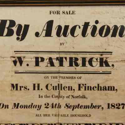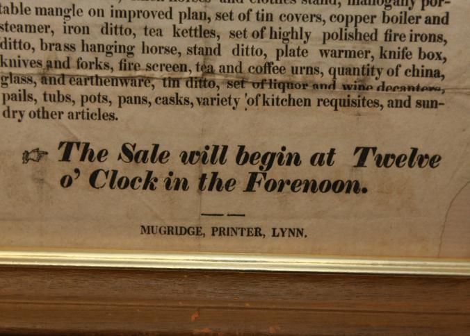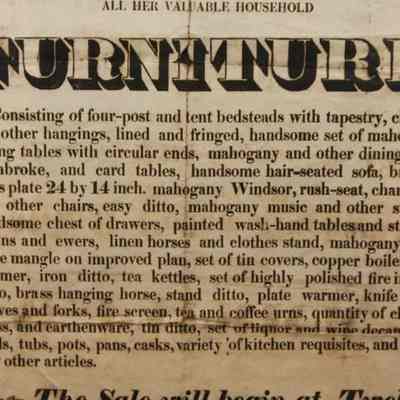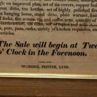 FR BROADSIDE, 1827, MA. W. PATRICK, AUCTIONEER. FURNITURE. 9 3/4" X 13 3/4"