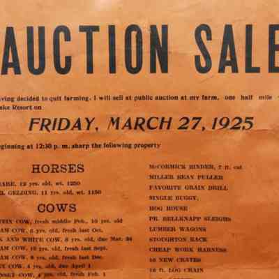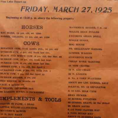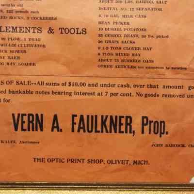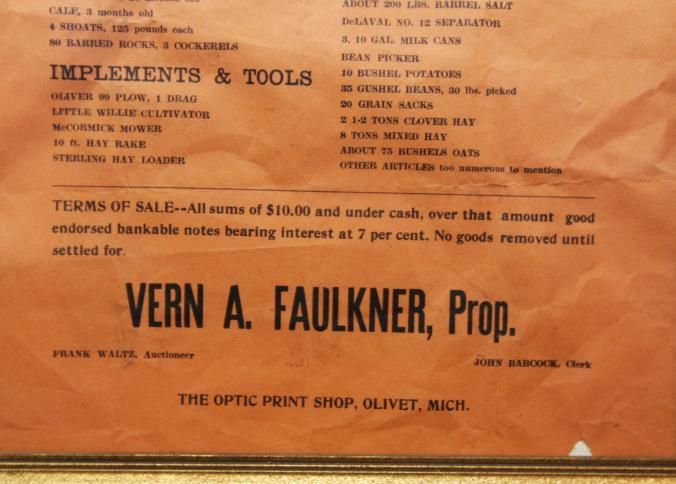 FR BROADSIDE, 1925, MI. FARM, LIVESTOCK, EQUIPMENT. FRANK WALTZ, AUCTIONEER. 10 1/2" X 13"
