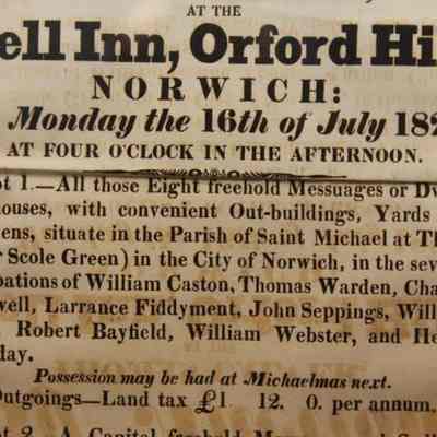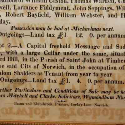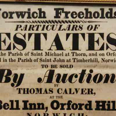 FR BROADSIDE, 1827, NORWICH. REAL ESTATE. NORWICH FREEHOLDS. THOMAS CALVER, AUCTIONEER. 11 1/2" X 14 1/2"Created By
