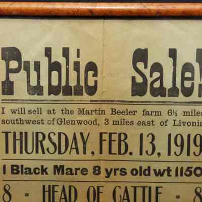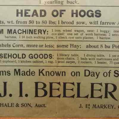 FR BROADSIDE, 1919, LIVESTOCK AND MACHINERY. T.B. HALE & SON, AUCTIONEERS. 12 1/2" X 15 1/2"