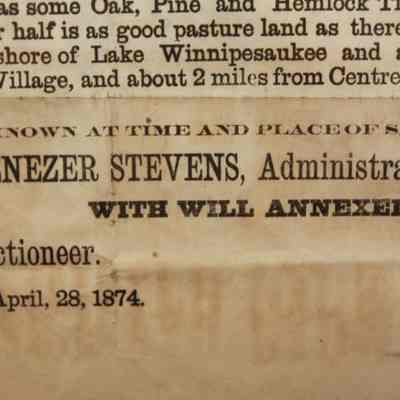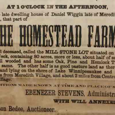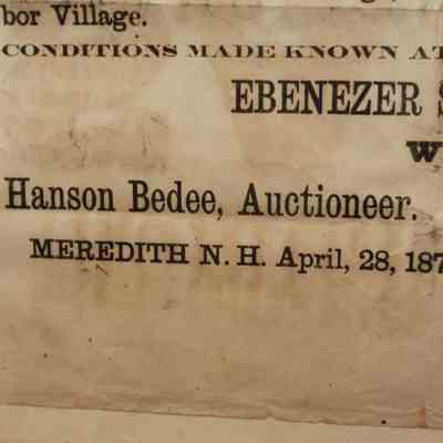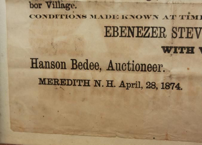 FR BROADSIDE, 1874, NH. ESTATE SALE, MEREDITH NECK. HOMESTEAD FARM, HANSON BEDEE, AUCTIONEER. 15" X 21"Created By