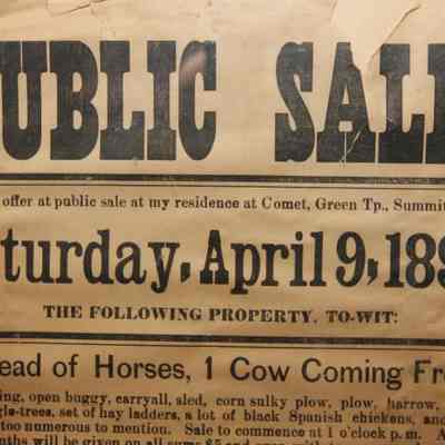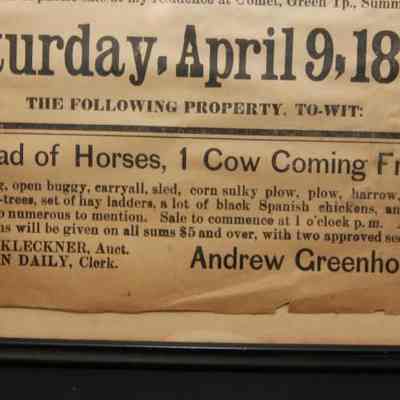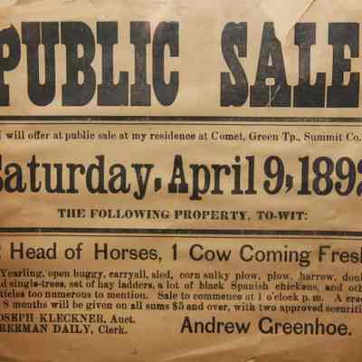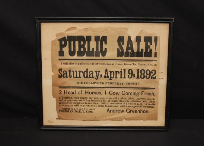 FR BROADSIDE, 1892, COMET, GREET TP. SUMMIT CO. LIVESTOCK, EQUIPMENT. JOSEPH KLECKNER, AUCTIONEER. 14 3/4" X 11 3/4"Created By