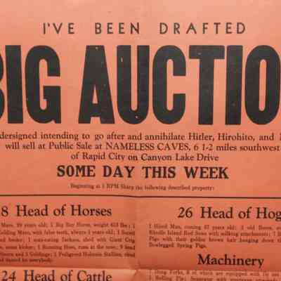 FR ADVERTISING, POLITICAL - I'VE BEEN DRAFTED BIG AUCTION. THE UNDERSIGNED INTENDING TO GO AFTER AND ANNIHILATE HITLER, HIROHITO AND MUSSOLINI WILL SELL AT PUBLIC SALE AT NAMELESS CAVES, SOME DAY THIS WEEK. I.CATCHEM, AUCTIONEER. 13" X 15 3/4"Created By