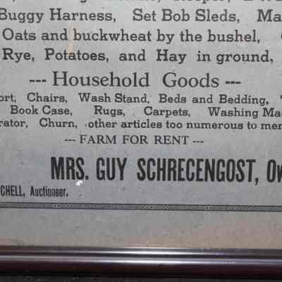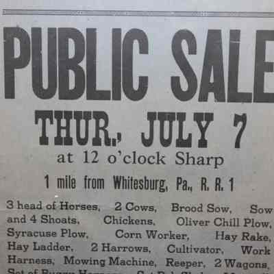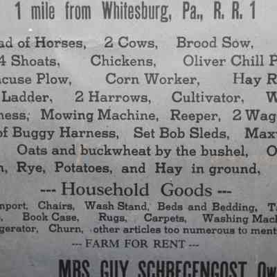 FR BROADSIDE, FARM, LIVESTOCK, PA. J.L. STUTCHELL, AUCTIONEER. NO DATE. 12" X 15"