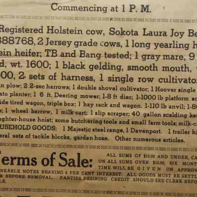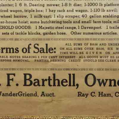 FR BROADSIDE, FARM, EVERSON. M. VANDERGRIEND, AUCTIONEER. 9 1/4" X 12 1/4"