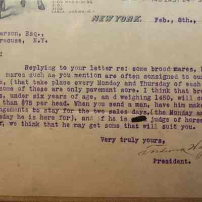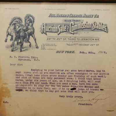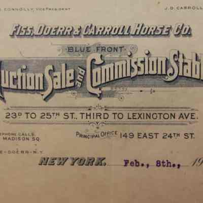 FR DOC, LETTERHEAD, HORSE AUCTIONS, NY. 1907. FISS, DOERR & CARROLL HORSE CO., BLUE FRONT AUCTION SALE AND COMMISSION STABLES. 11 1/2" X 9 1/4"Created By