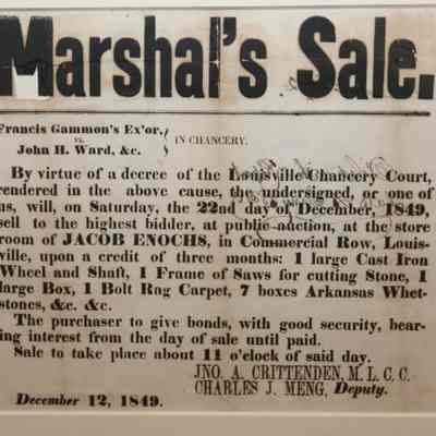 FR BROADSIDE, 1849, MARSHAL'S SALE, LOUISVILLE CHANCERY COURT ORDERED SALE. 13 1/2" X 11 1/2"