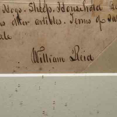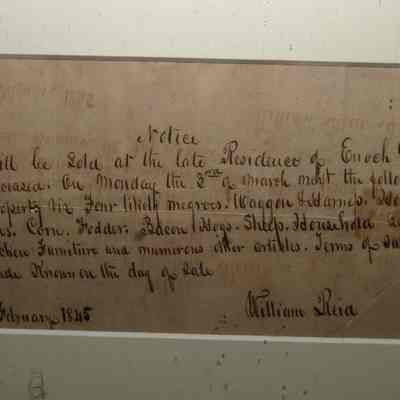 FR BROADSIDE, SLAVE, 1845, HANDWRITTEN. NOTICE, WILL BE SOLD AT THE LATE RESIDENCE OF ENOCH GRULB, DECEASED. … FOLLOWING PROPERTY HIS FOUR LIKELY NEGROES, WAGGON & HARNESS, HORSES, COWS, CORN, ETC. 16 1/2" X 14 1/2"Created By