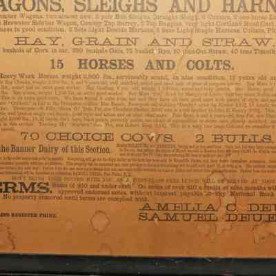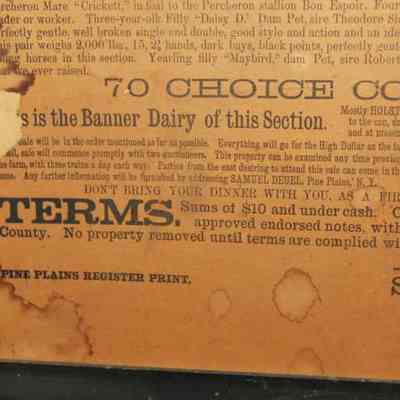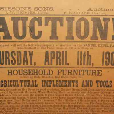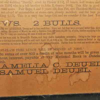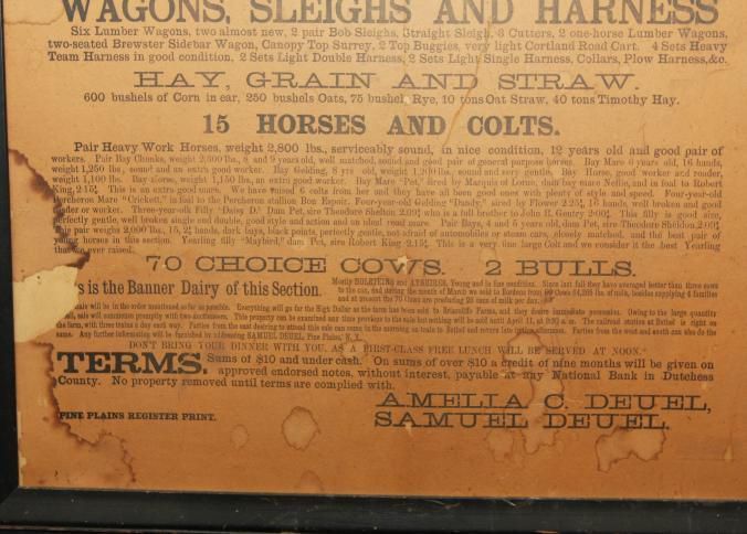 FR BROADSIDE, 1907, SAMUEL DEUEL FARM, PINE PLAINS. J.B. SISSON'S SONS, AUCTIONEERS. HOUSEHOLD, FARM, EQUIPMENT, LIVESTOCK. 21" X 27 1/2"Created By