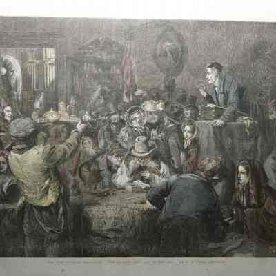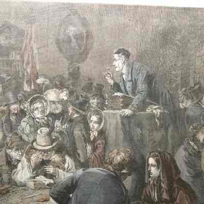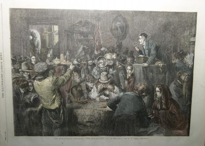 FR COLOR PRINT, 1862, FROM THE ILLUSTRATED LONDON NEWS. "THE INTERNATIONAL EXHIBITION: THE AUCTION-LAST DAY OF THE SALE BY G.B. O'NEIL" 18" X 15"Created By