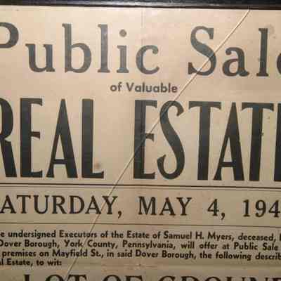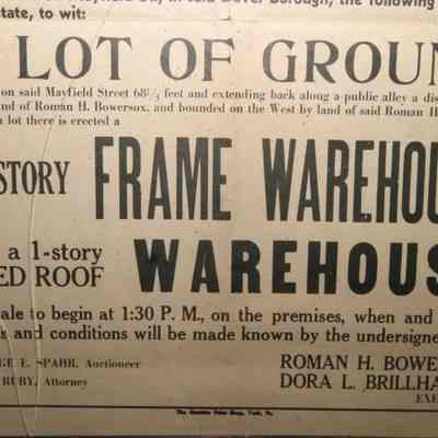 FR BROADSIDE, 1940, PA. PUBLIC SALE OF VALUABLE REAL ESTATE. A LOT OF GROUND, 2-STORY FRAME WAREHOUSE, 1 STORY SHED ROOM WAREHOUSE. GEORGE E. SPAHR, AUCTIONEER. 19" X 23 1/4"Created By