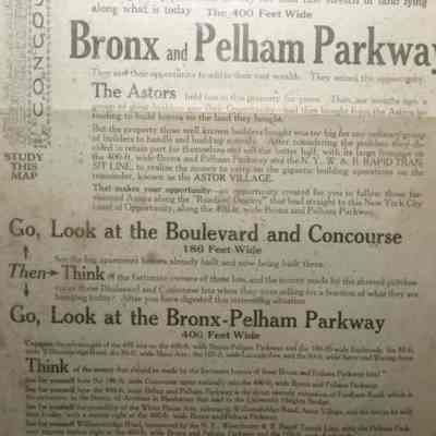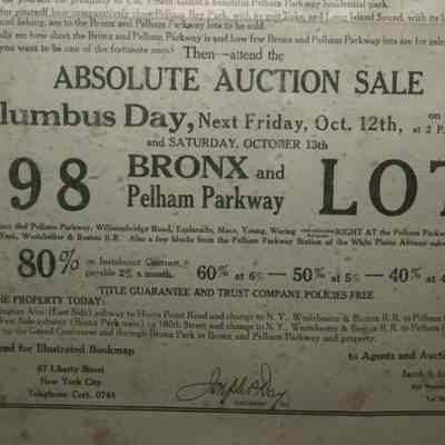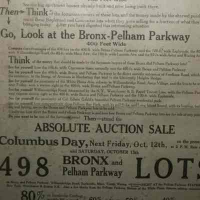 FR BROADSIDE, NY. "ROADS OF DESTINY" LEADING TO THE LAND OF OPPORTUNITY. BRONX AND PELHAM PARKWAY LOTS. ABSOLUTE AUCTION SALE. JACOB & EMIL LEITNER, INC, AUCTIONEERS. 18" X 26 3/4"Created By