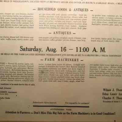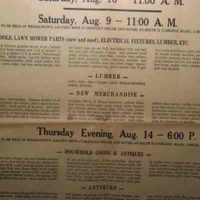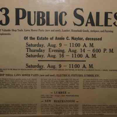FR BROADSIDE, ESTATE. 3 PUBLIC SALES. TOOLS, HOUSEHOLD, LUMBER, ANTIQUES. VERNON R. LEREW, AUCTIONEER. 18 1/2" X 23 1/2"Created By