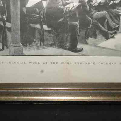FR PRINT FROM THE GRAPHIC, 1889, "A SALE OF COLONIAL WOOL AT THE WOOL EXCHANGE, COLEMAN STREET, CITY" 21 1/2" X 19"Created By